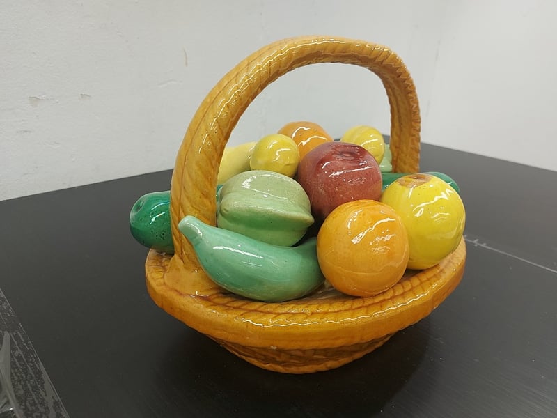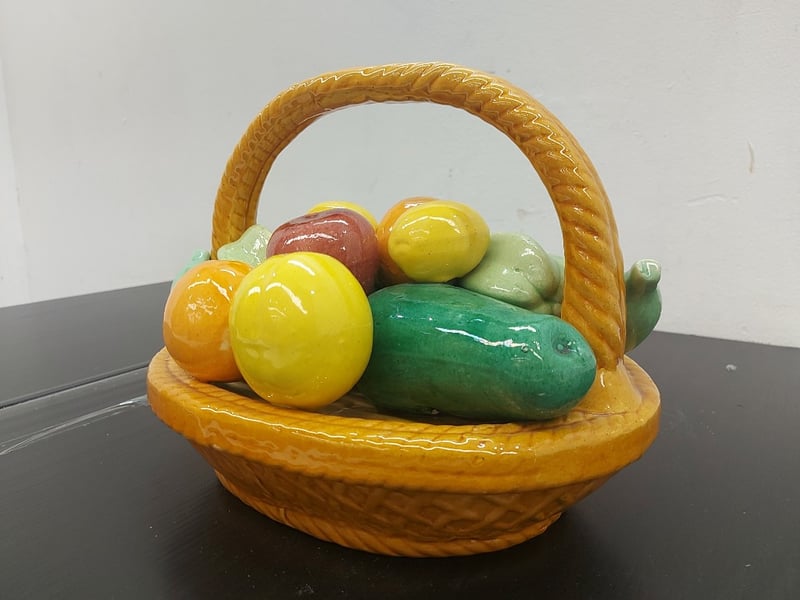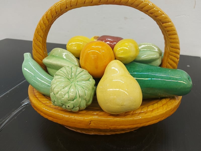 DECORATIVE FRUIT BASKET, CERAMIC, GLOSSY,