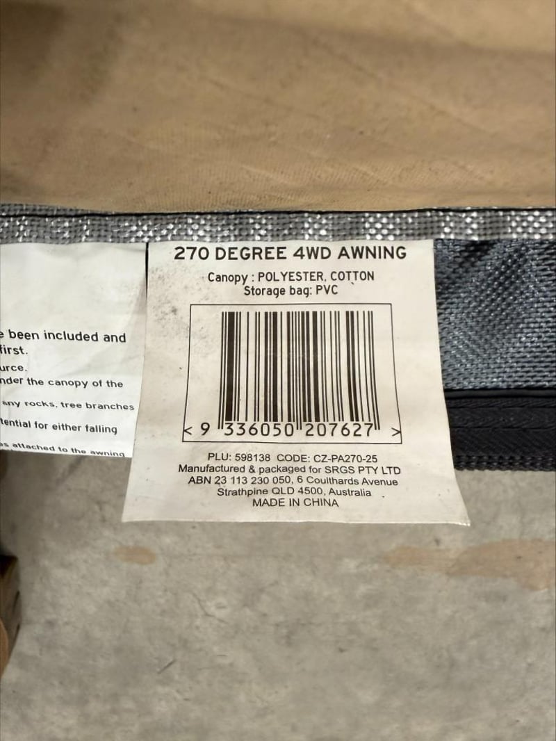 Awning, XTM 270 Degree Awning, Part No: 598138, Includes PVC travel bag. Approx Dimensions: 20H x 260W x 10D