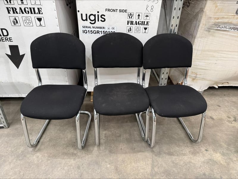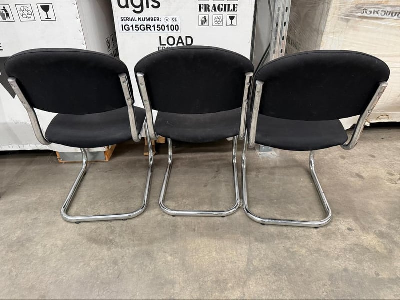 Chairs, Office Chairs, Black with Silver Legs Approx Dimensions: 92H x 60W x 50D Quantity: 3, Sold as lot.