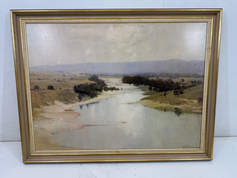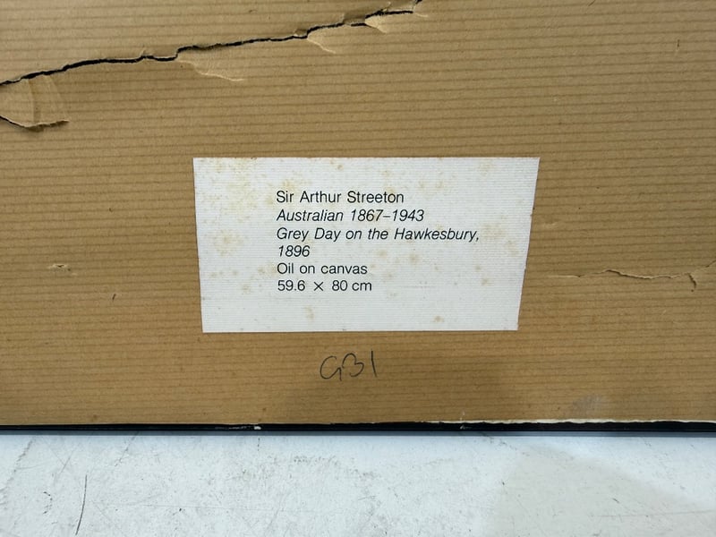 Art, Sir Arthur Streeton, Australian 1867-1943, Grey Day on the Hawkesbury, 1986, Oil on Canvas. Dimensions: 59.6 x 80cm.