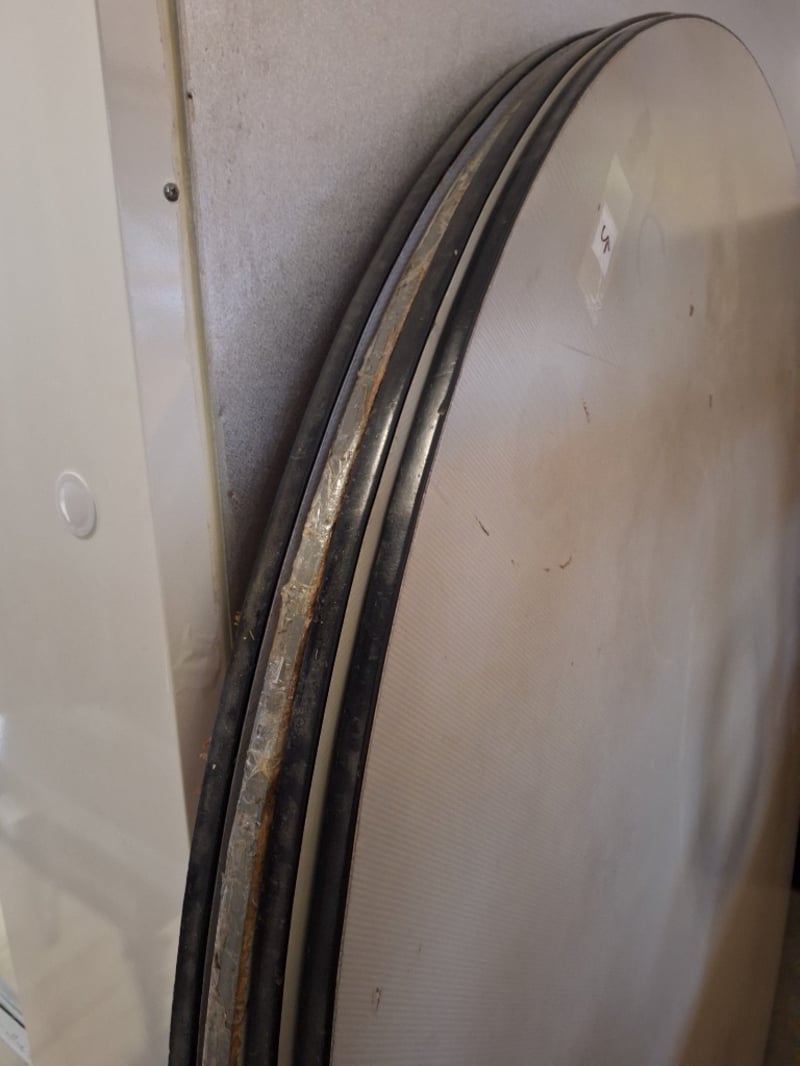 X4 Table Tops, Timber Style Dimensions H:2cm W:182cm D:182cm SOLD AS LOT