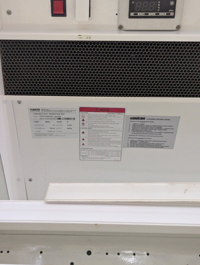 Open fronted commercial fridge, adjustable shelvingDimensions: H 220cm x W 196cm x D 98cmLocal collection only