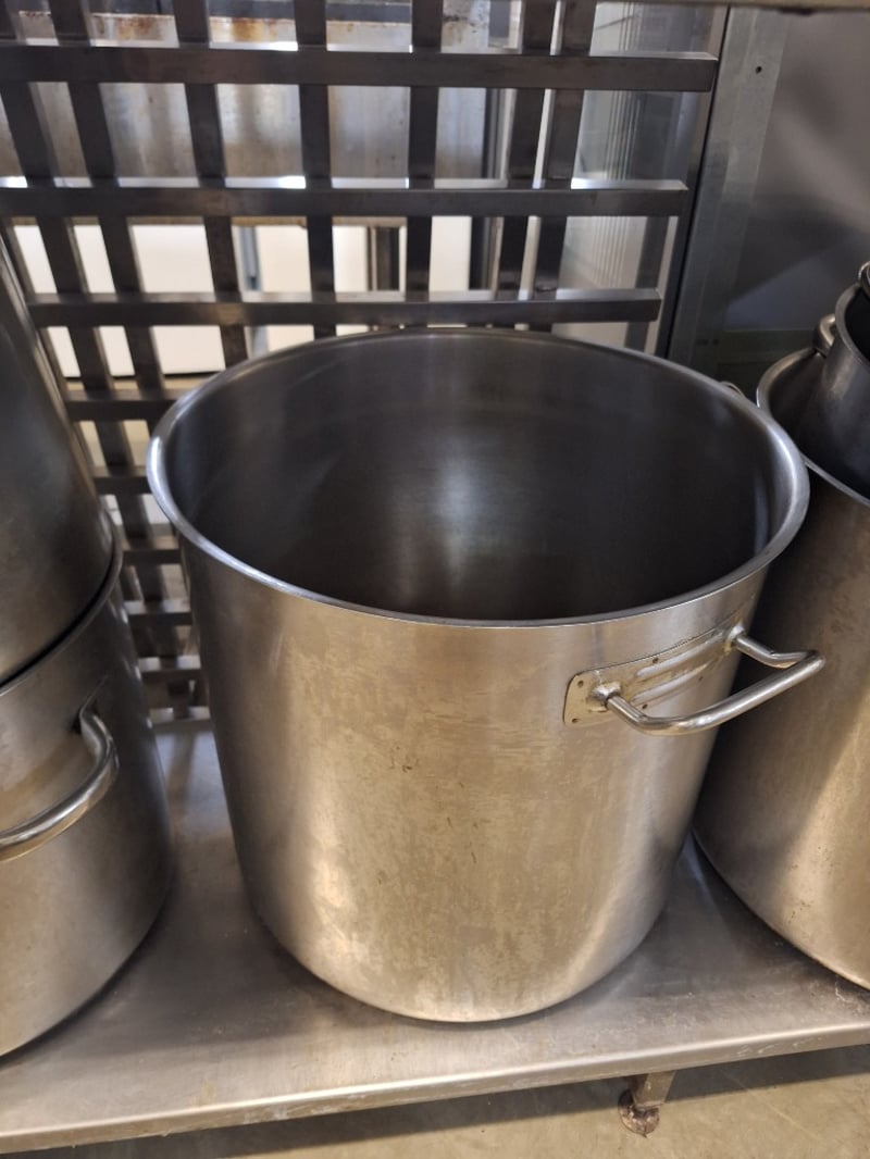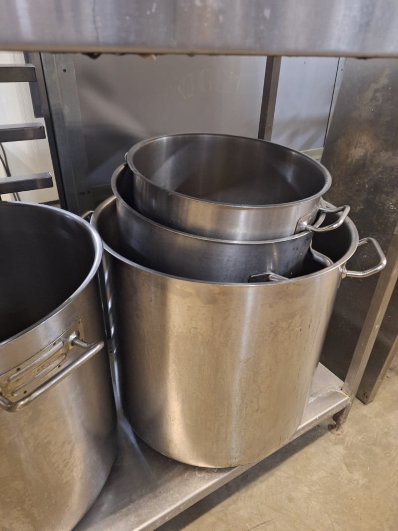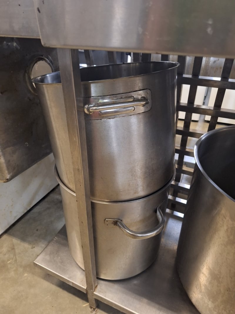 Commercial Kitchen Bench With Large Pans Dimensions Bench H:92cm W:150cm D:55cm SOLD AS LOT