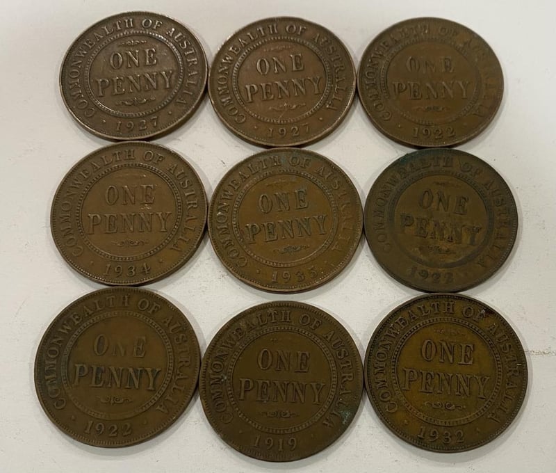 AUSTRALIA PRE DECIMAL KGV PENNIES X 9 488540+18