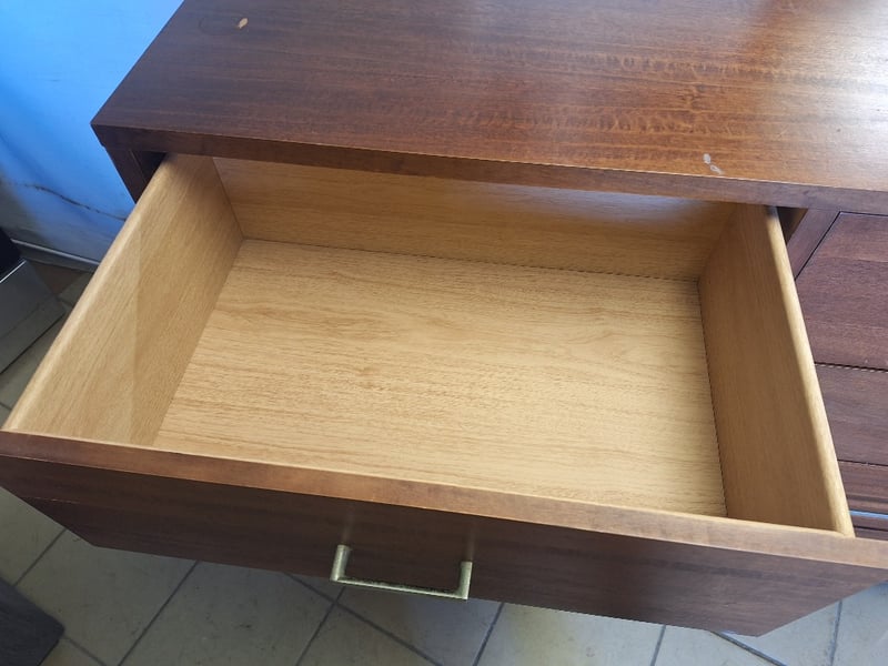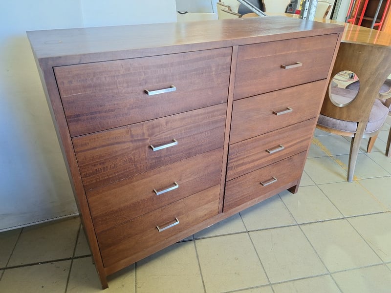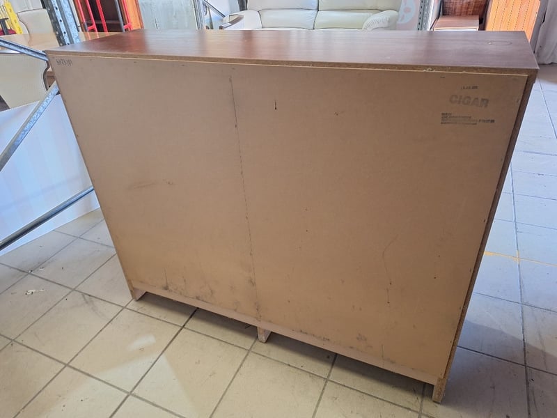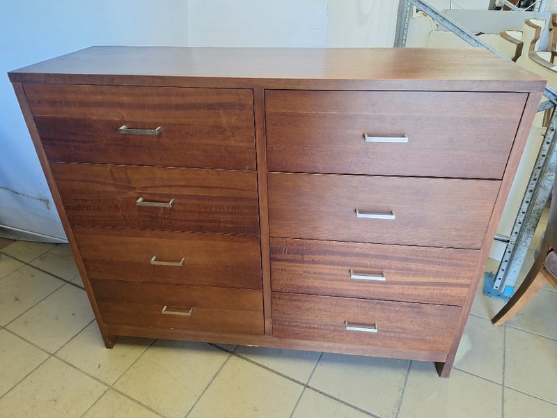Chest Of Drawers, Timber Style, Brown Finish Dimensions H:105cm W:131cm D:43cm