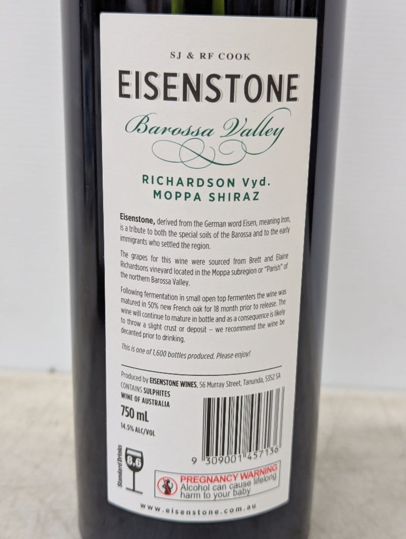 Wine, Eisenstone, Barossa Valley, Shiraz 2022, SV906, Bottle no. 1368 of 1600, 750ml, 14.5% alc/vol