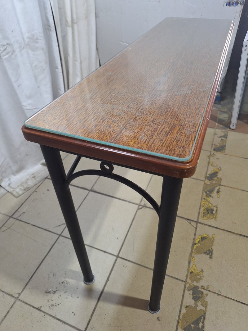 Hall Table With Glass Top, Timber Style, Brown Finish Dimensions H:78cm W:122cm D:37cm
