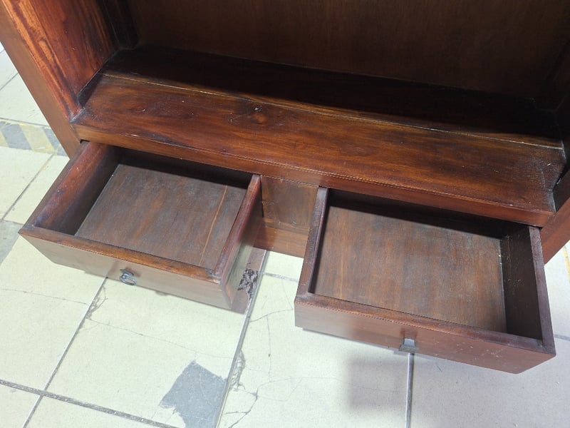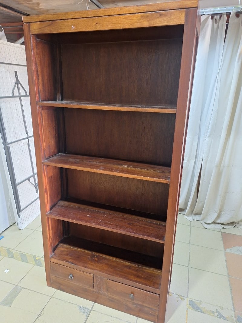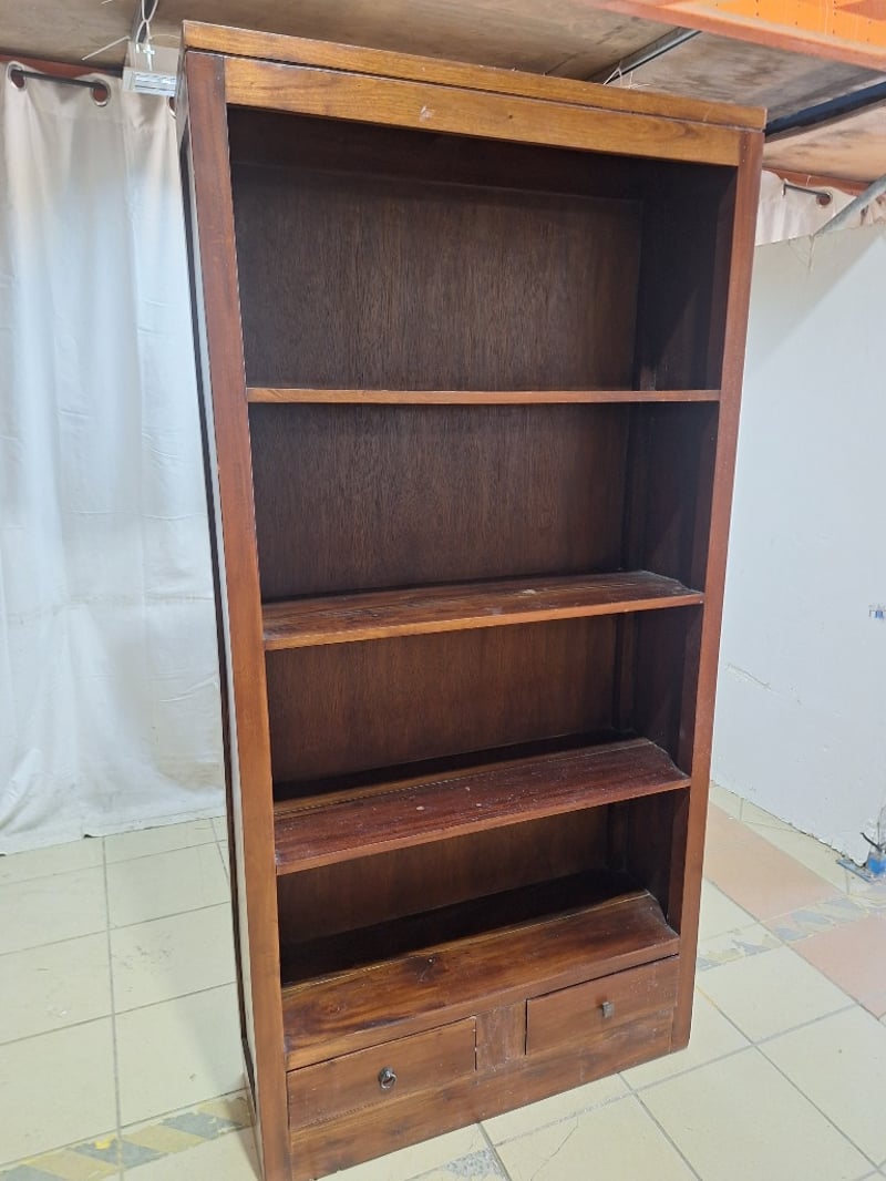 Bookshelf With Drawers, Timber Style, Brown Finish Dimensions H:181cm W:90cm D:29cm