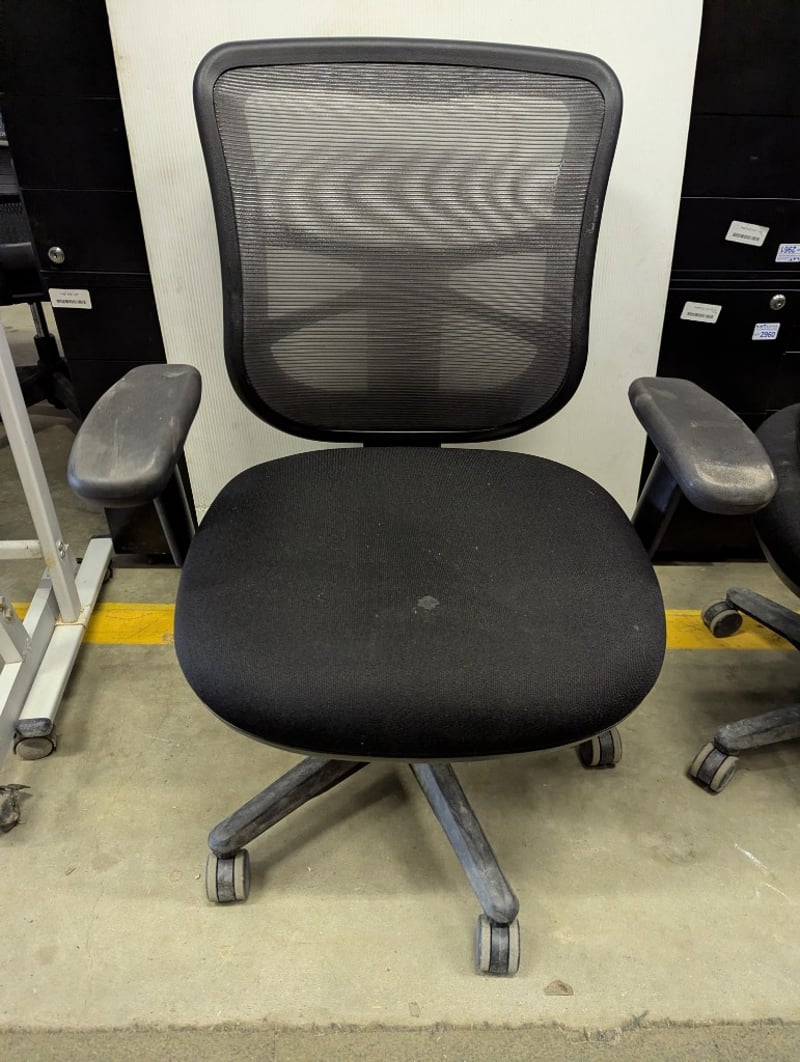 Office chair, black, netted back, adjustable Dimensions: H 94cm x W 67cm x D 60cmBID PER EACH