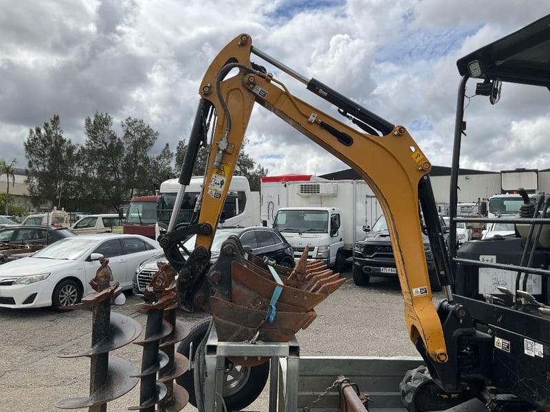 Attachments: 1.2m wide mud bucket, 1 x40cm gp bucket, 1 x 60 cm gp bucket, ripper, hydraulic auger with 3 drill bits