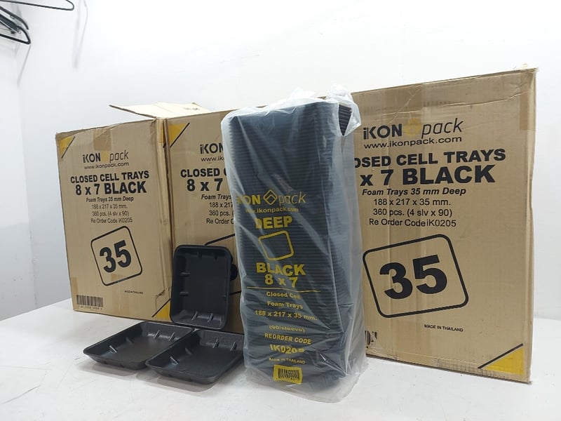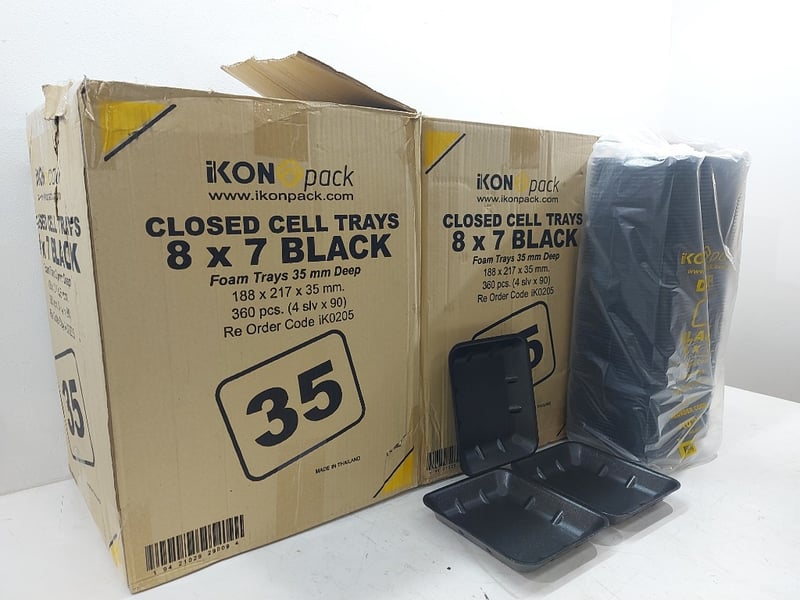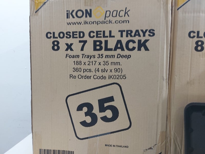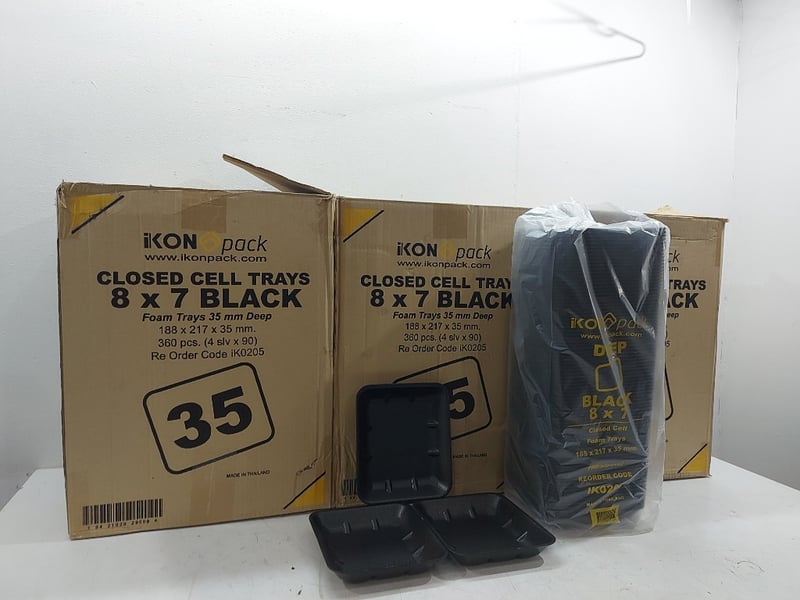 Closed Cell Trays 8×7 Black, Foam Trys 35mm Deep, Quantity 3 Boxes,