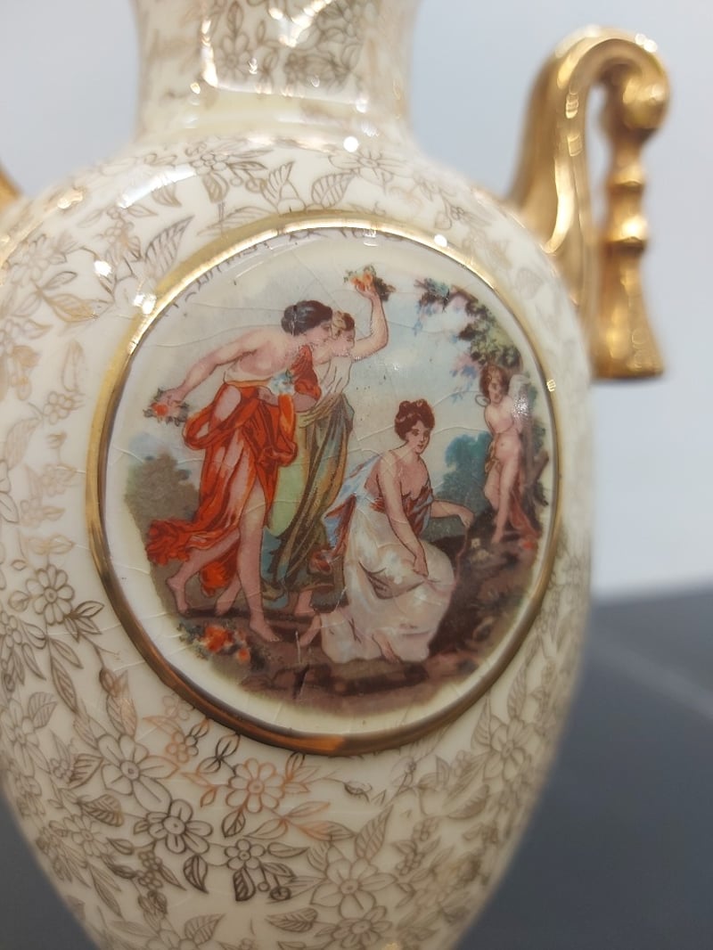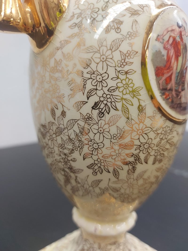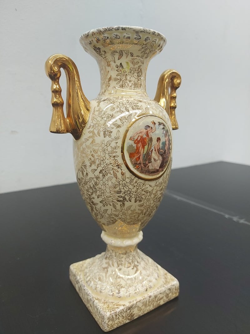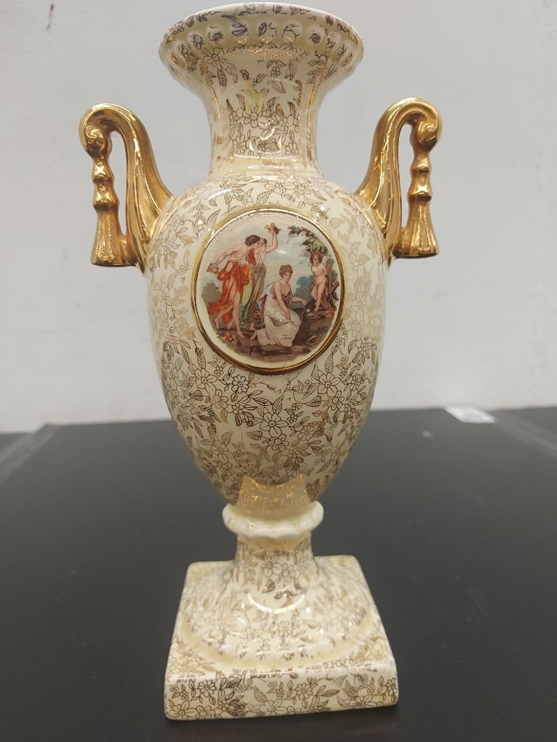 PORCELAIN URN VASE, EMPIRE ENGLAND, GOLD CHINTZ, 1179