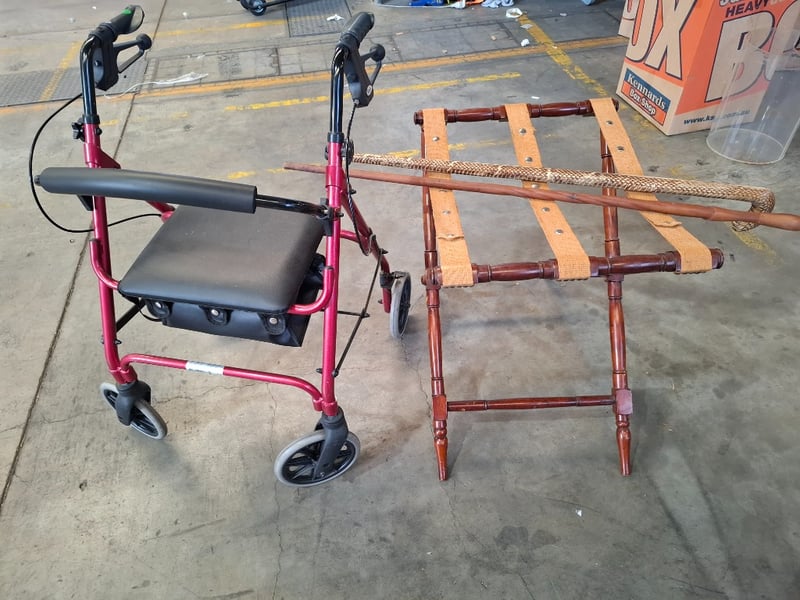 1 walker, 1 x suite case base, 2 x wppdem walking sticks
