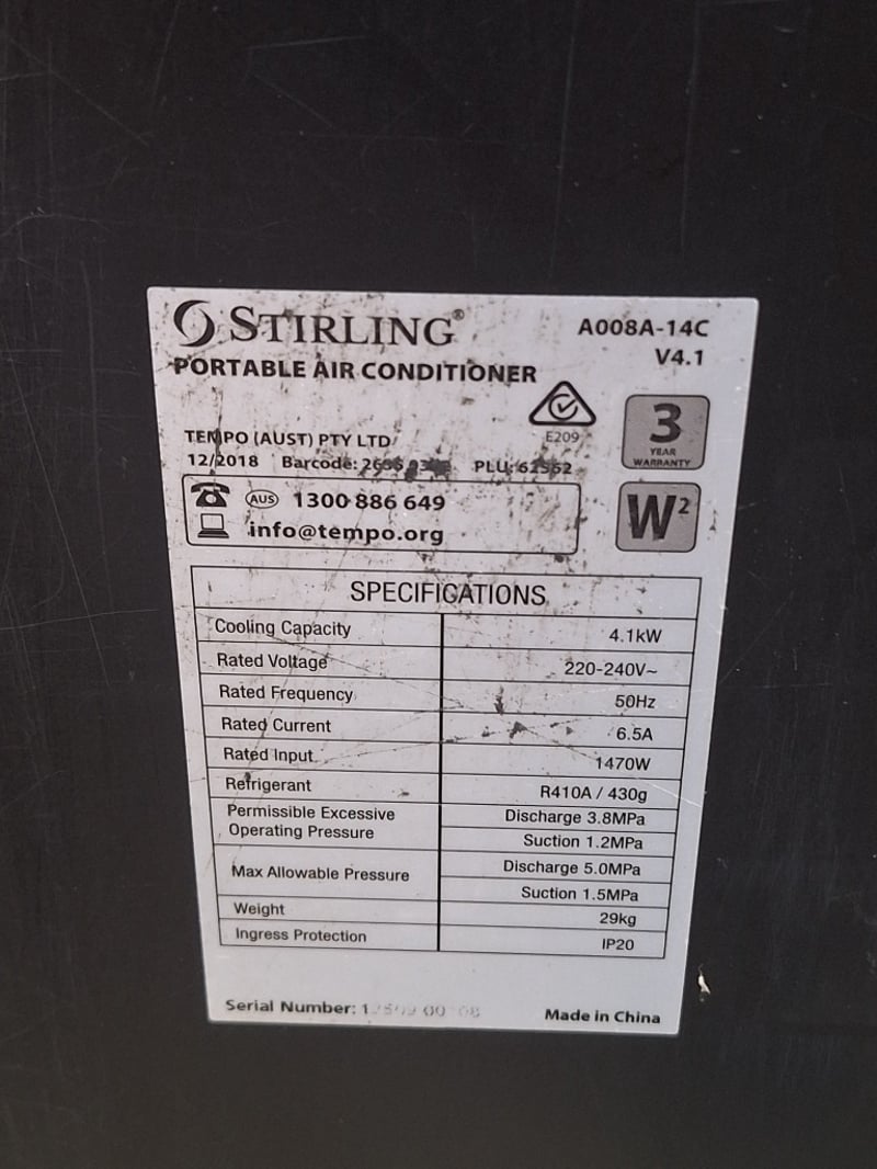 Stirling Portable Air Conditioner (Model A008A-14C)