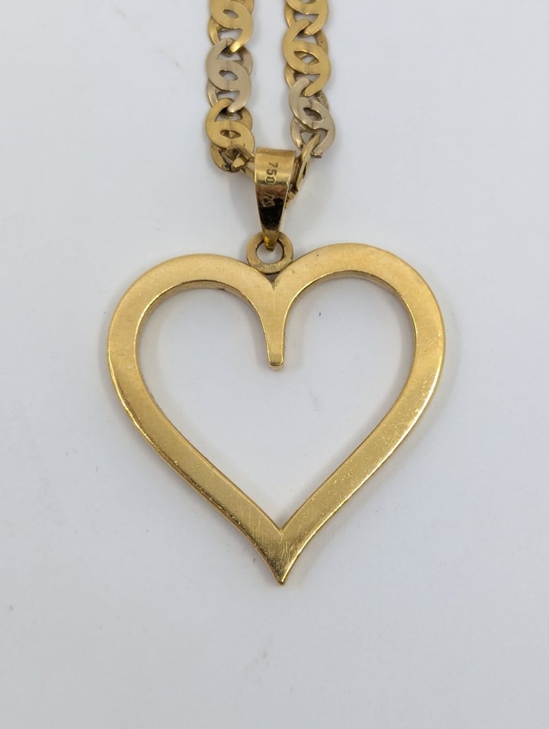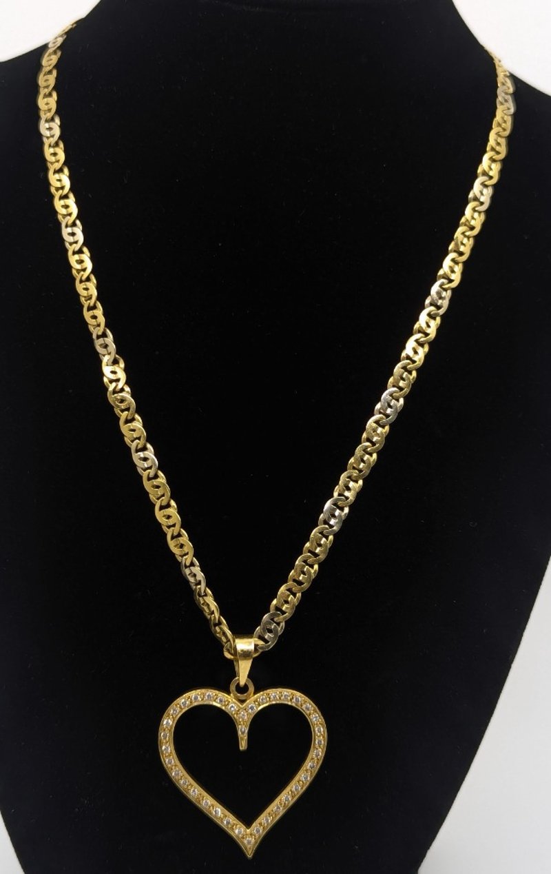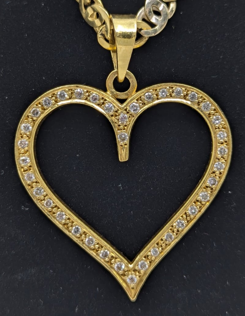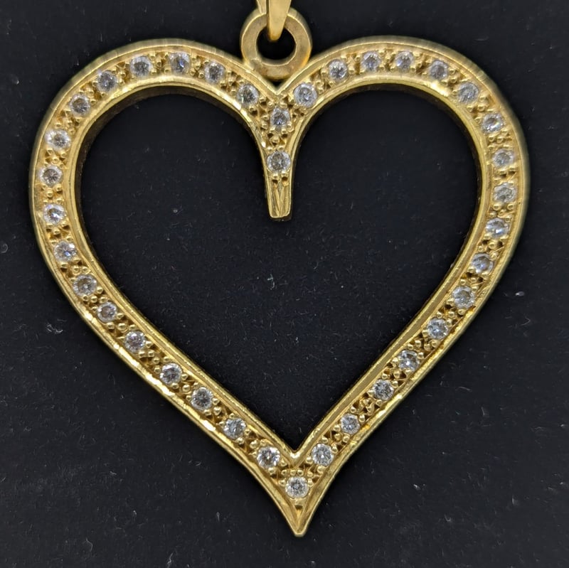 18k yellow gold diamond heart pendant chain necklace, chain length approx: 44cm (unclasped), stamped: 750weight: 30.04 grams