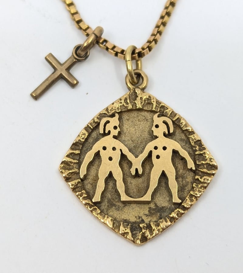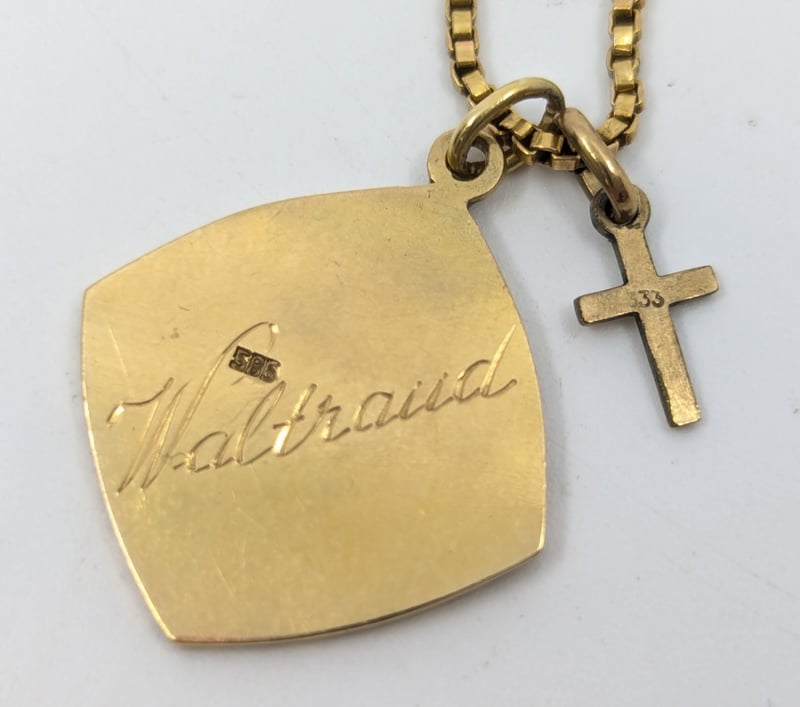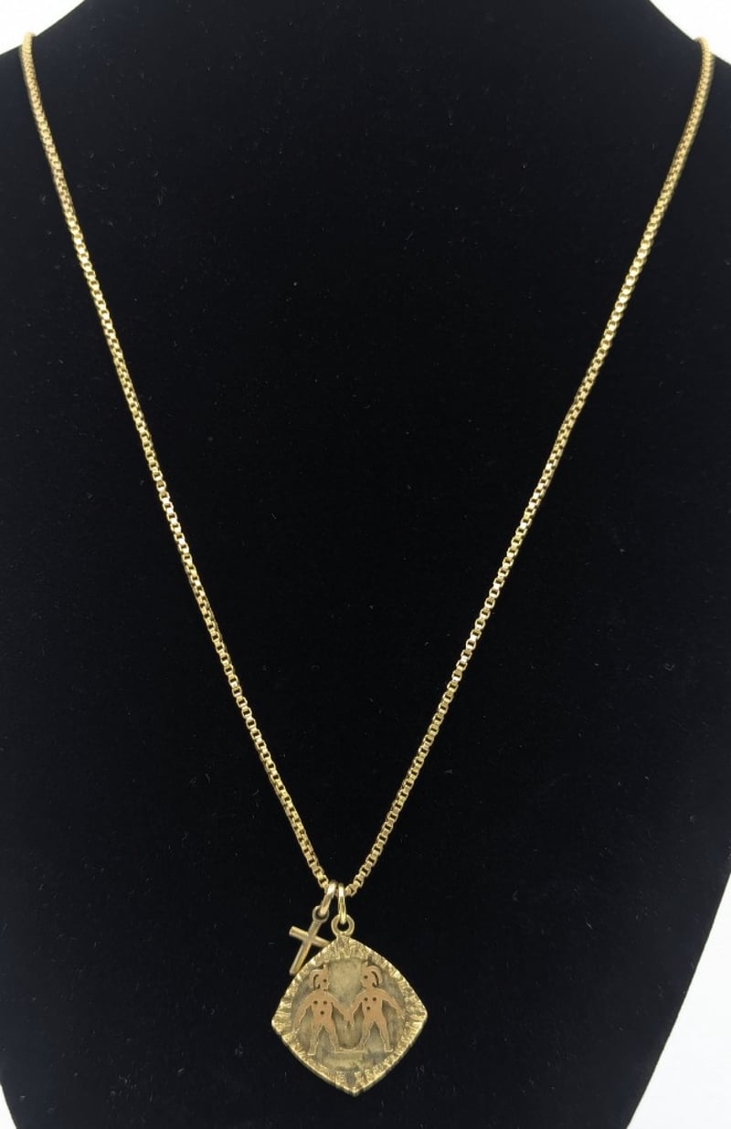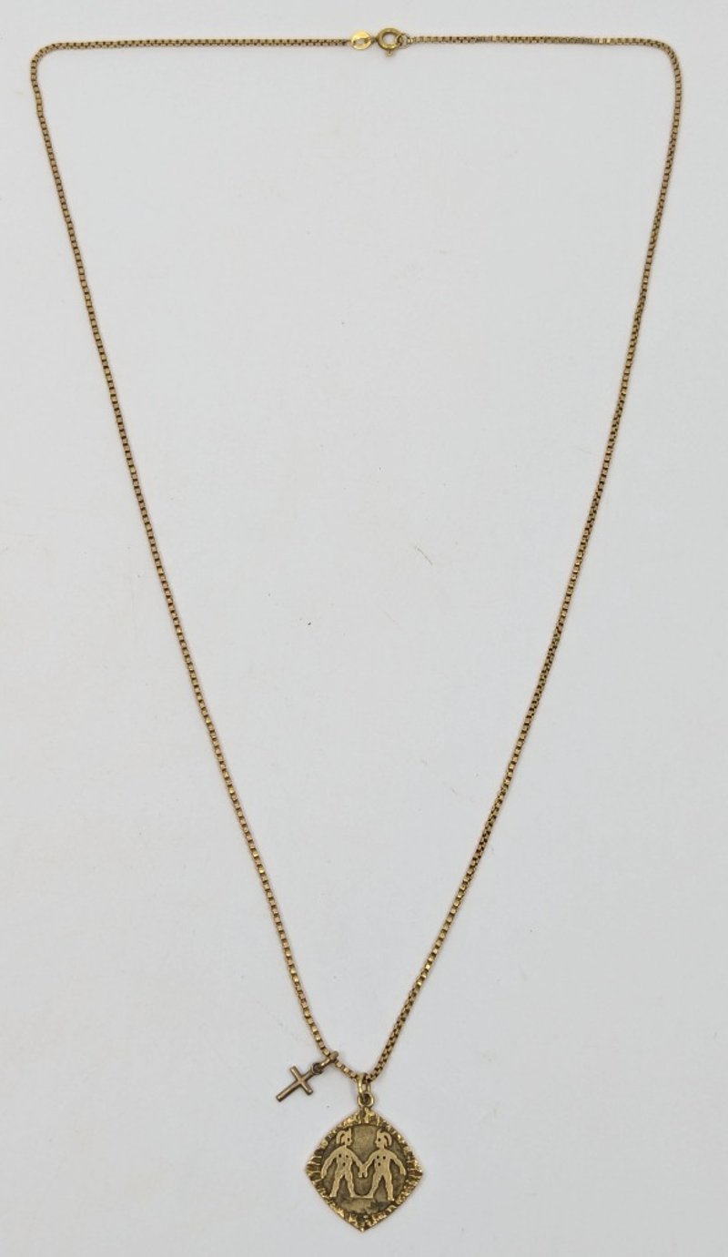 14k yellow gold pendant chain necklace, includes 8k cross pendant, chain and main pendant stamped: 585, cross pendant stamped: 333, chain length approx: 61cm (unclasped)