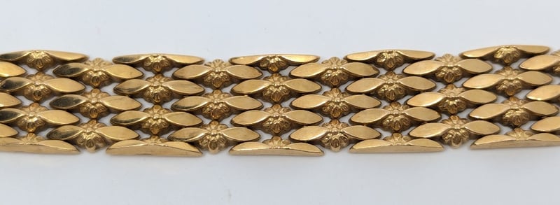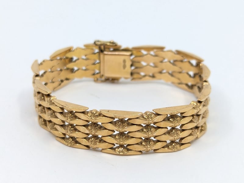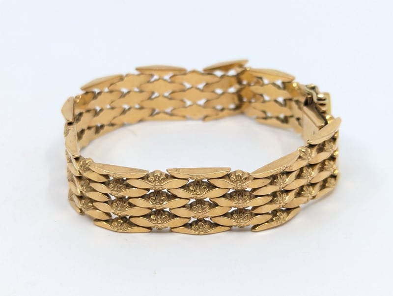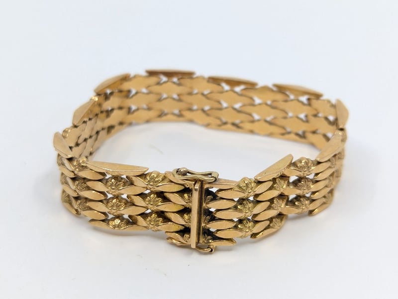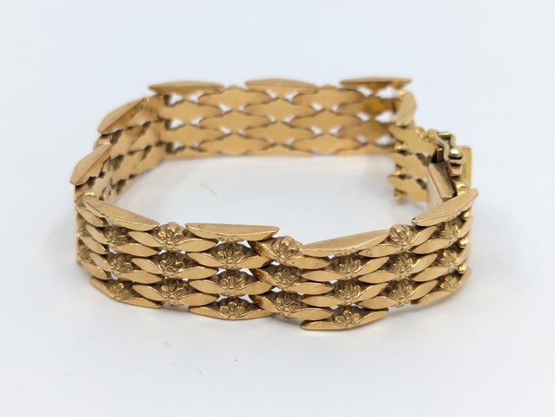 14k yellow gold bracelet, bracelet features flower patterns, bracelet length approx: 18cm (unclasped)