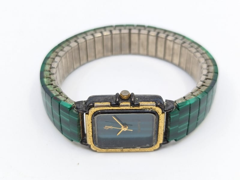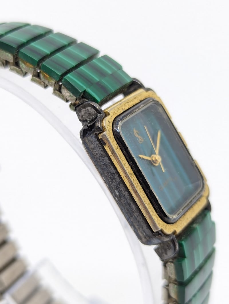 saint laurent watch, green dial, non numerical hour markers, movement untested