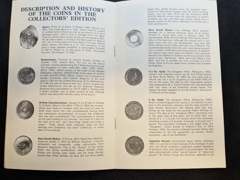 FACSIMILE COLLECTION OF HISTORIC AUSTRALIAN COINS - COLLECTORS' EDITION 1970Note: This Collection Holds Replica Coins, Not Real CoinsCondition: UncProvenance: Ibis Imprints, Sydney - Issued 1970 For Australia'S Bi-Centennial Year584470+37