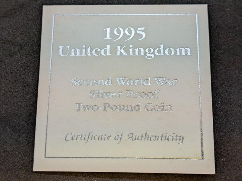 1995 UNITED KINGDOM SECOND WORLD WAR SILVER PROOF TWO-POUND COINIncludes Certificate Of AuthenticityCondition: Proof584470+38