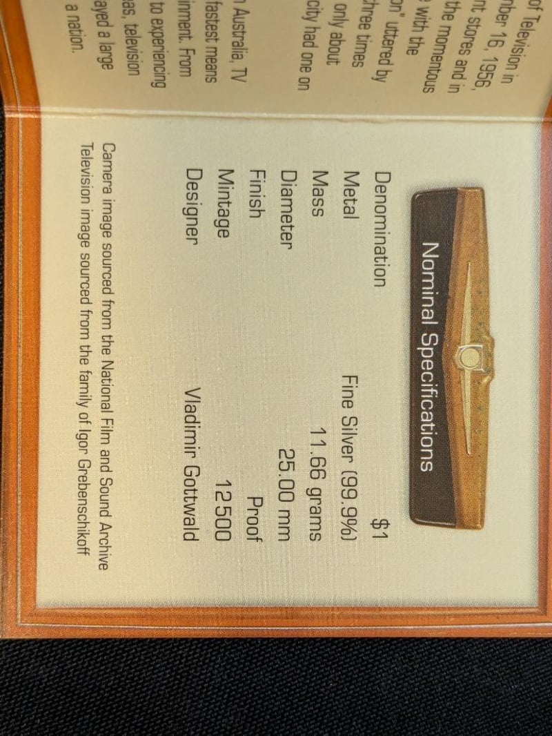 2006 AUSTRALIAN $1 FINE SILVER PROOF COIN - 50 YEARS OF AUSTRALIAN TELEVISIONCondition: Unc584470+42