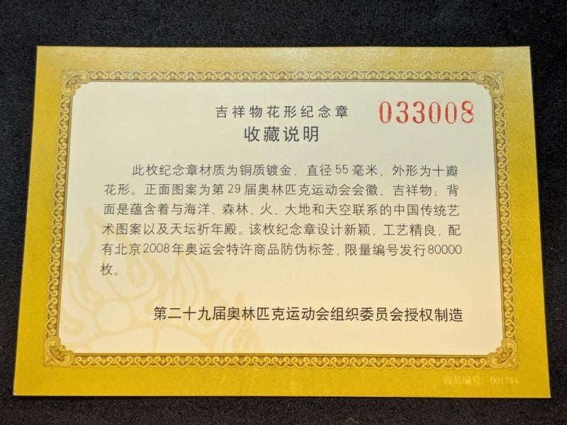 BEIJING 2008 OLYMPIC GAMES MASCOTS COMMEMORATIVE COIN - FRIENDLIES GOLD COINCondition: ProofProvenance: Beijing 2008 Olympic Games Organizing Committee584470+47