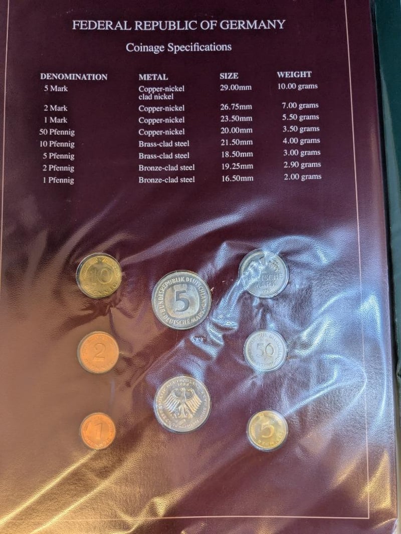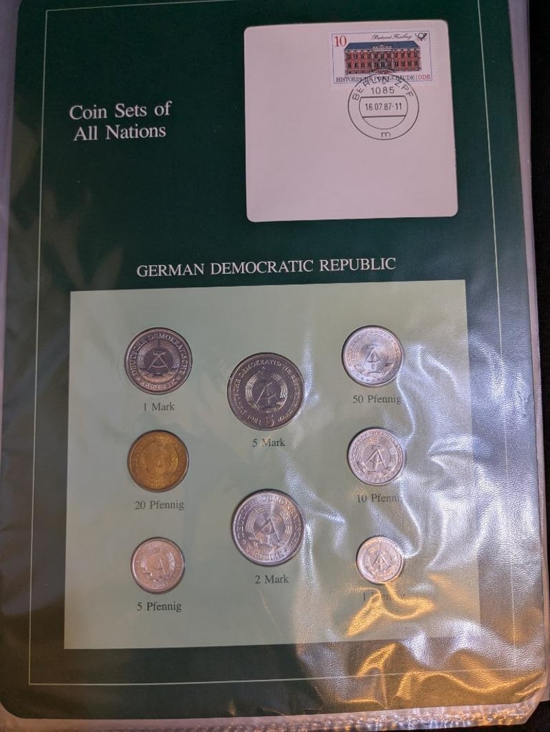 COIN SETS OF NATIONS COLLECTION ALBUM - DENMARK, GERMAN DEMOCRATIC REPUBLIC, AND FEDERAL REPUBLIC OF GERMANYCondition: Unc584470+82