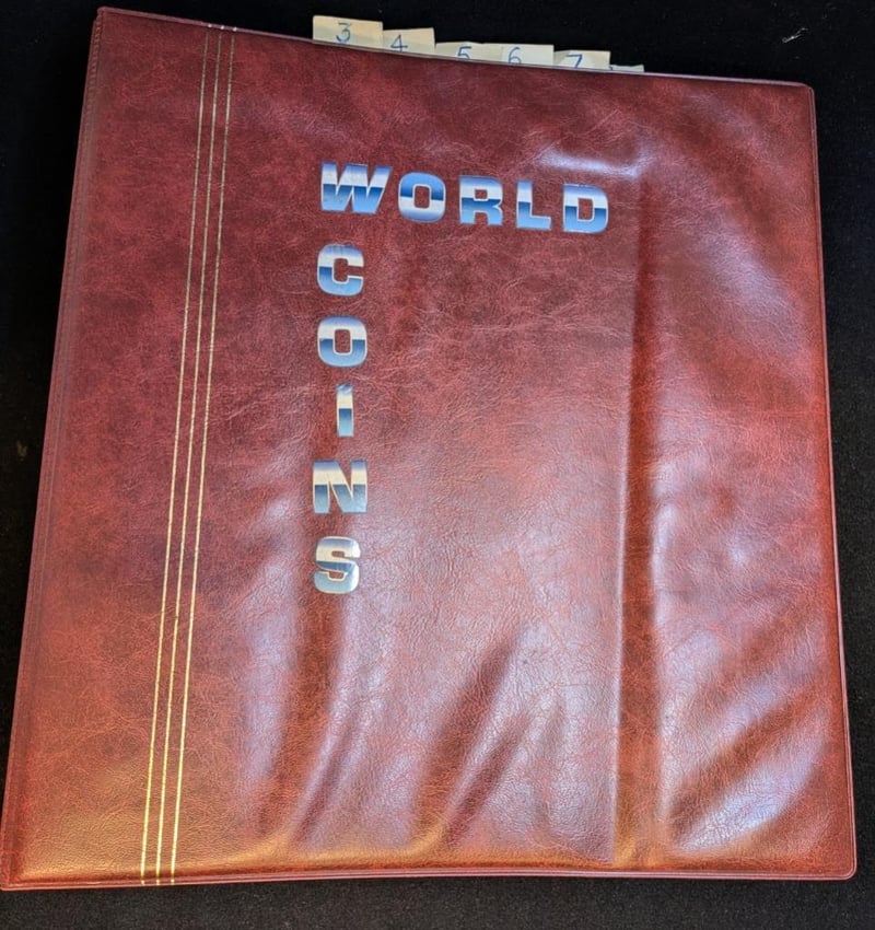 COMPREHENSIVE WORLD COINS COLLECTION IN RED LEATHER BINDER WITH INDEXCondition: Vf584470+86