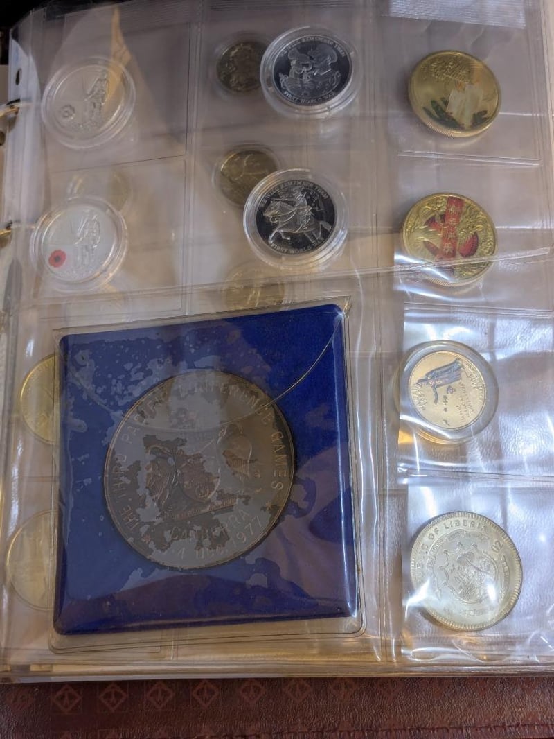 MIXED INTERNATIONAL COMMEMORATIVE COINS AND BULLION COLLECTION IN ALBUM584470+111