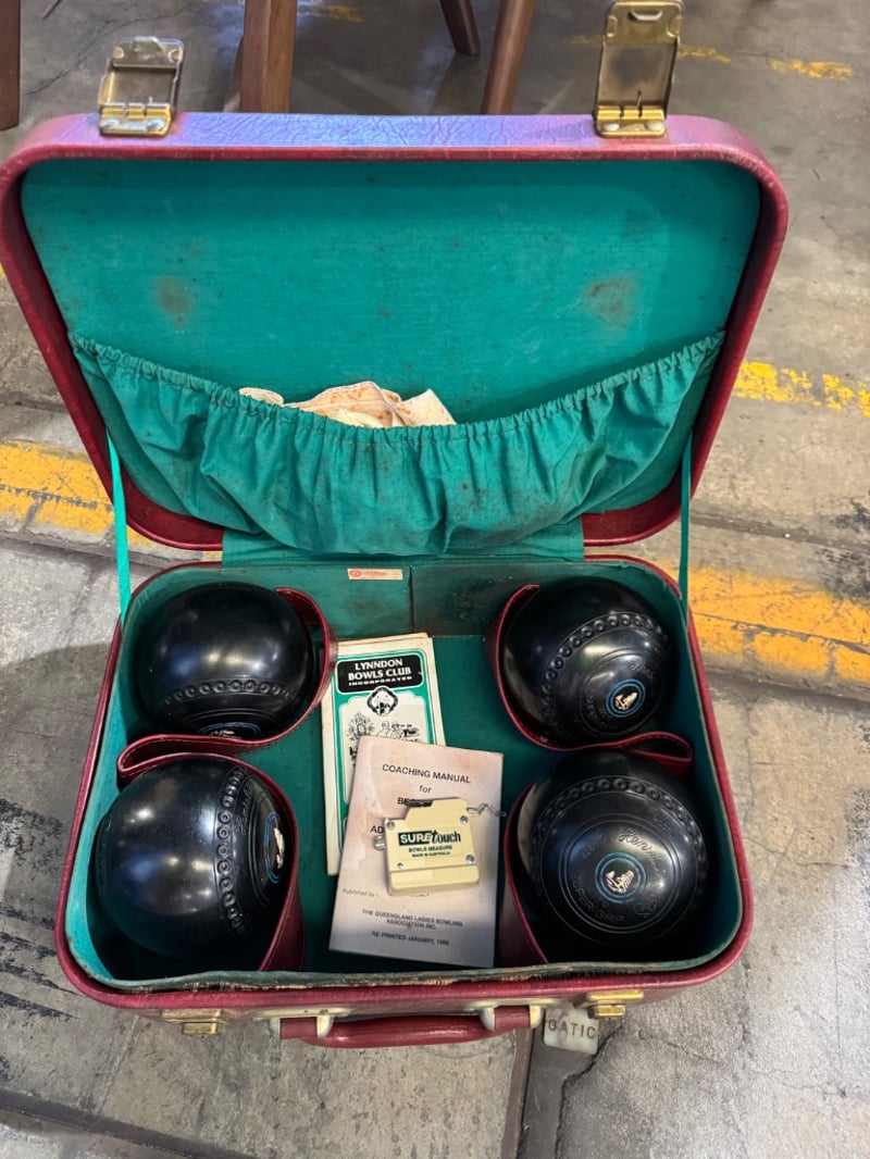 Set of bowls, includes case, coaching manual bowls measure tape