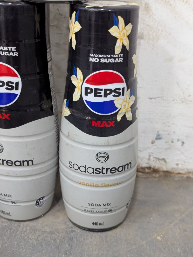 Soda stream soda mix, pepsi max and pepsi max vanilla, expires: 08/08/2026 SOLD AS LOT