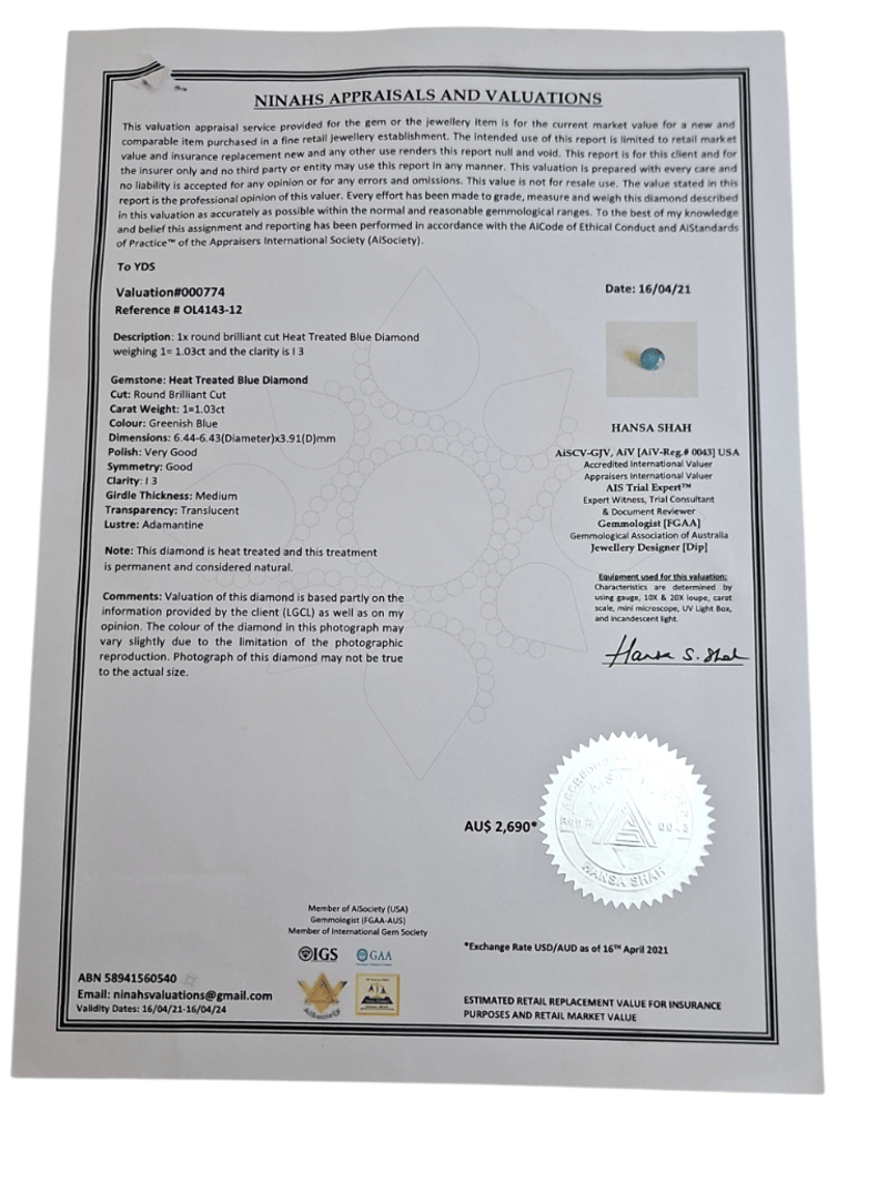 This valuation has been conducted by an independent third-party professional. The valuation amount is an assessment by the issuing valuer and does not reflect the auction value of the item.