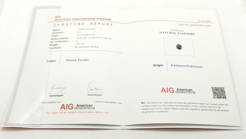 2.97CT KASHMIR PURPLE OVAL FACETED CUT NATURAL SAPPHIREClarity: N/AColour: Bluish PurpleFluorescence: NoneTotal Item Weight: 0.59gCondition: Good - Refer To ImagesACACIA RIDGE584449+11