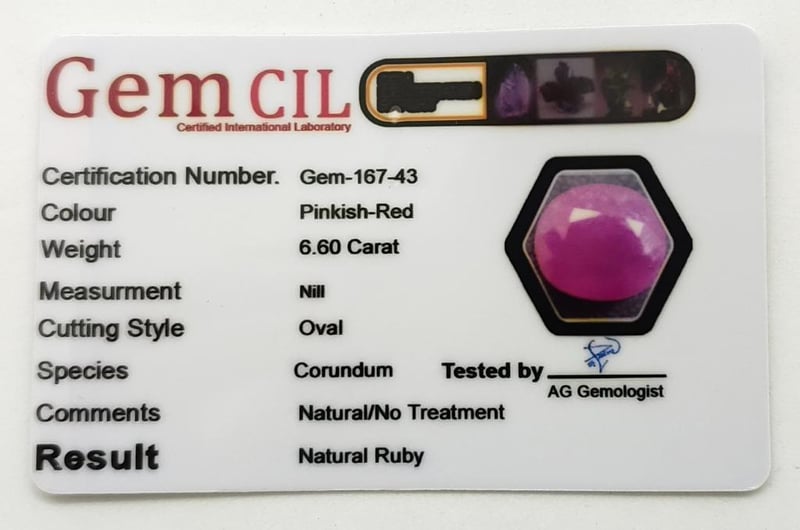 6.6CT OVAL CUT NATURAL RUBYClarity: N/AColour: Pinkish RedFlourescense: N/ATotal Item Weight: 1.31gCondition: Good - Refer To ImagesACACIA RIDGE584449+28