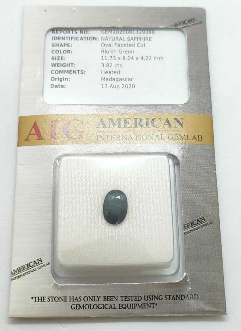 3.82CT OVAL FACETED CUT NATURAL SAPPHIREClarity: N/AColour: Bluish GreenFluorescence: N/ATotal Item Weight: 0.76gCondition: Good - Refer To ImagesACACIA RIDGE584449+32