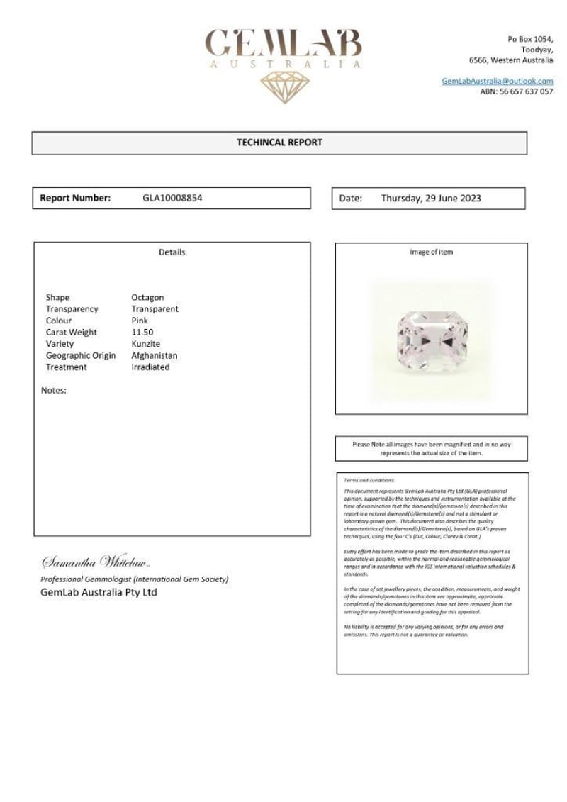 11.5CT KUNZITEClarity: TransparentCondition: Good - Refer To ImagesSR233603+32