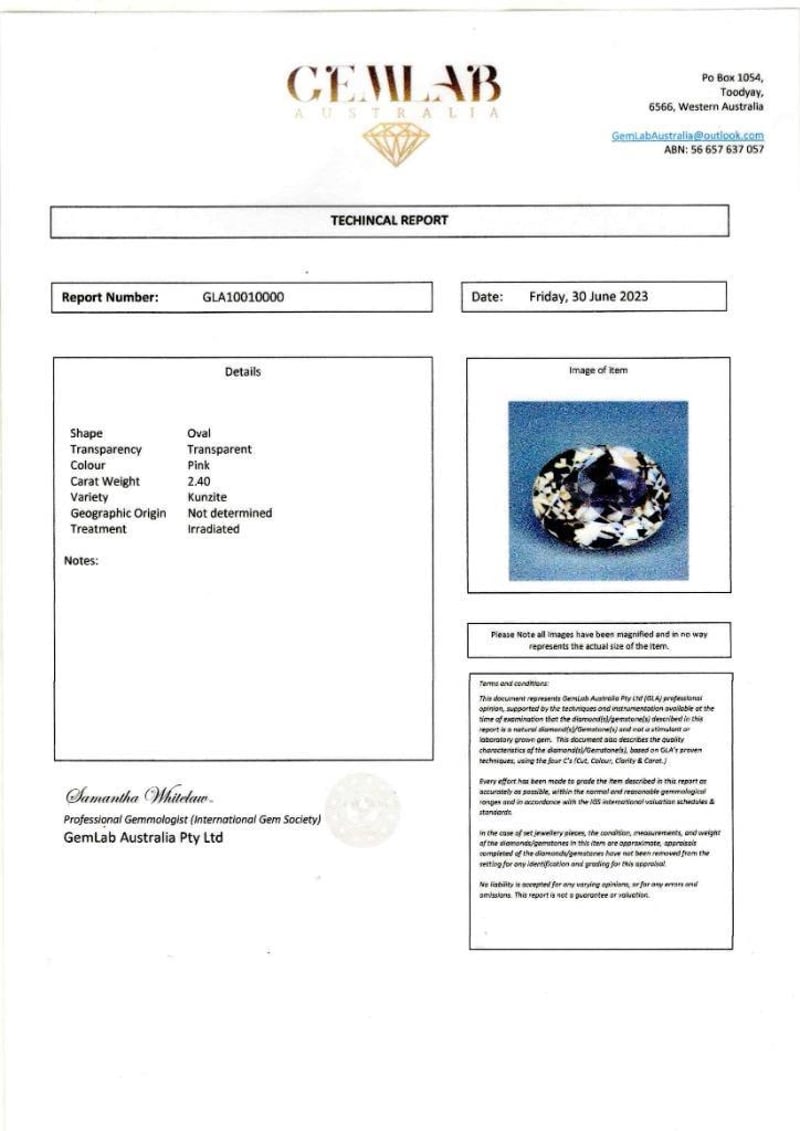 2.4CT KUNZITEClarity: TransparentCondition: Good - Refer To ImagesSR233603+35