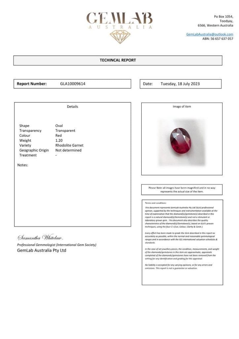 1.2CT RHODOLITE GARNETClarity: TransparentCondition: Good - Refer To ImagesSR233603+39