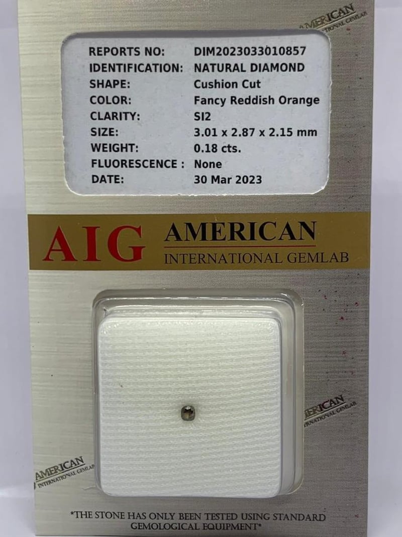 Shape: Cushion Cut Color: Fancy Reddish Orange Clarity: Si2
