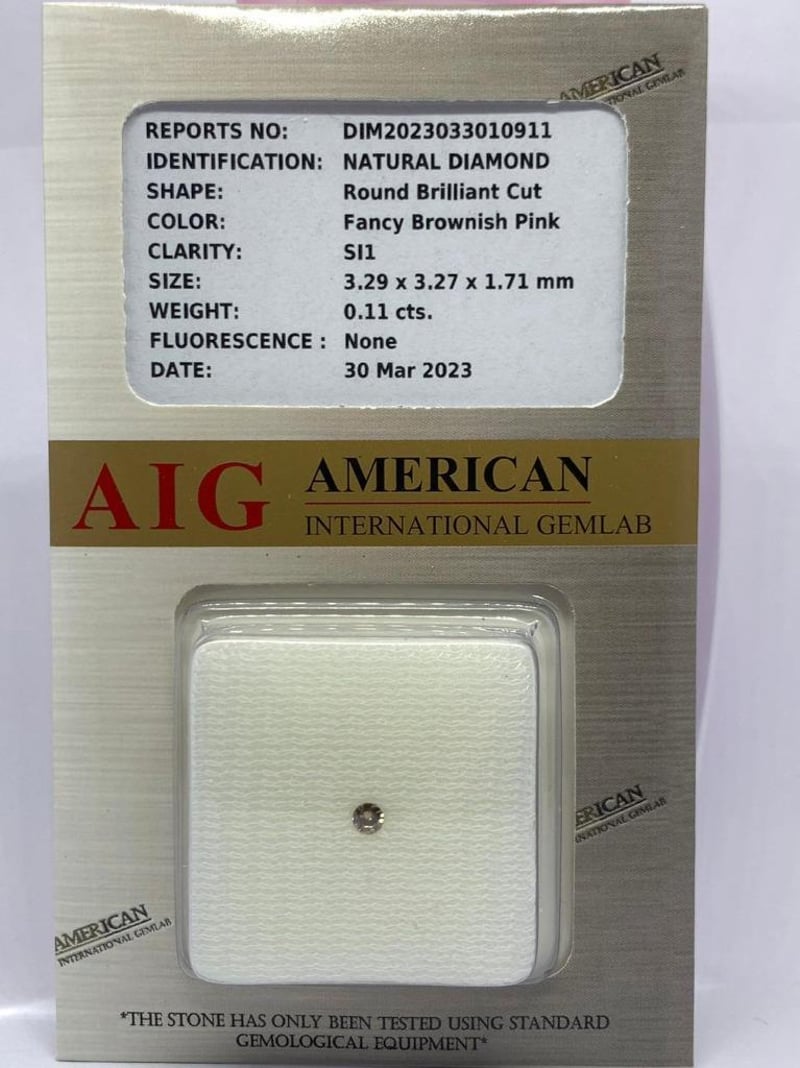 Shape: Round Brilliant Cut Color: Fancy Brownish Pink Clarity: Si1