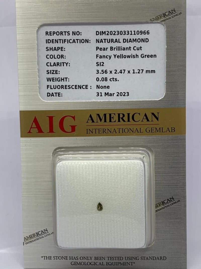 Shape: Pear Brilliant Cut Color: Fancy Yellowish Green Clarity: Si2