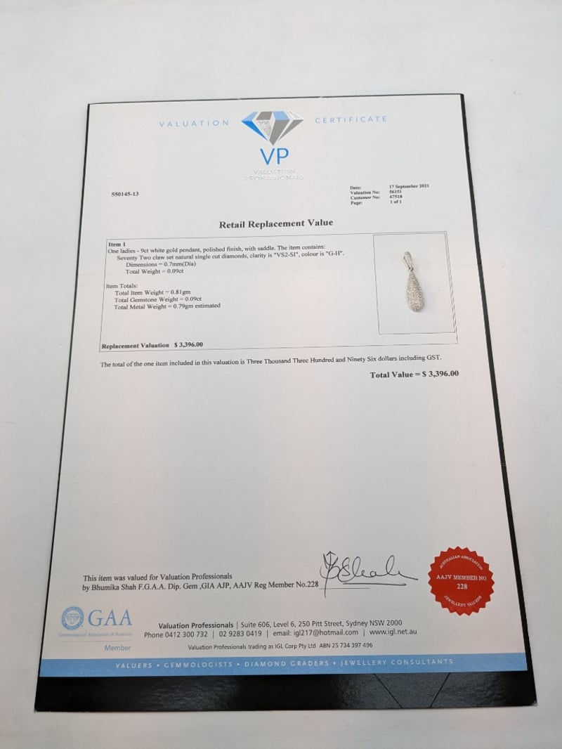 This valuation has been conducted by an independent third-party professional. The valuation amount is an assessment by the issuing valuer and does not reflect the auction value of the item.