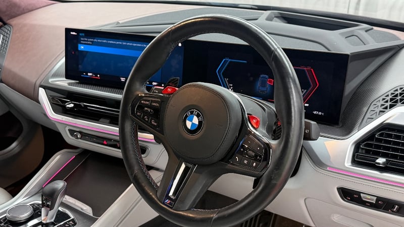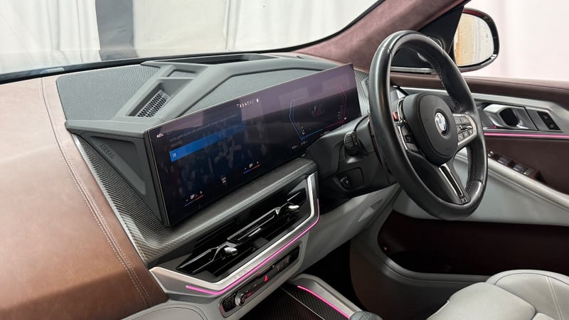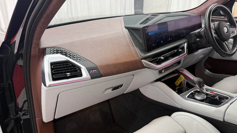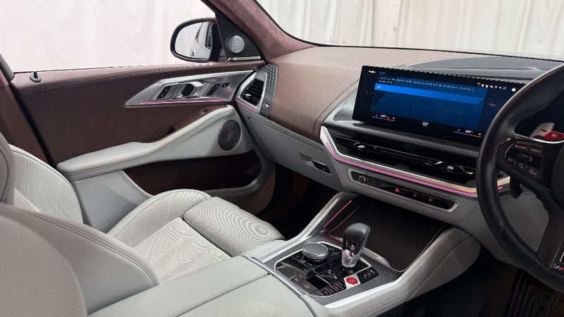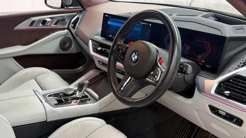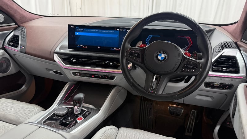 Description/extras: 2023 BMW XM. Powered by a 4.4L twin-turbo V8 paired with a plug-in hybrid system, delivering a massive 480kW and 800Nm through an 8-speed M Steptronic automatic and AWD (M xDrive). Features include adaptive M suspension, rear-wheel steering, and selectable electric driving with up to 80km range. Inside offers a premium luxury cabin with curved digital display, ambient lighting, highend leather trim, and advanced driver assists. 0–100km/h in 4.3 seconds, blending supercar performance with everyday SUV practicality.