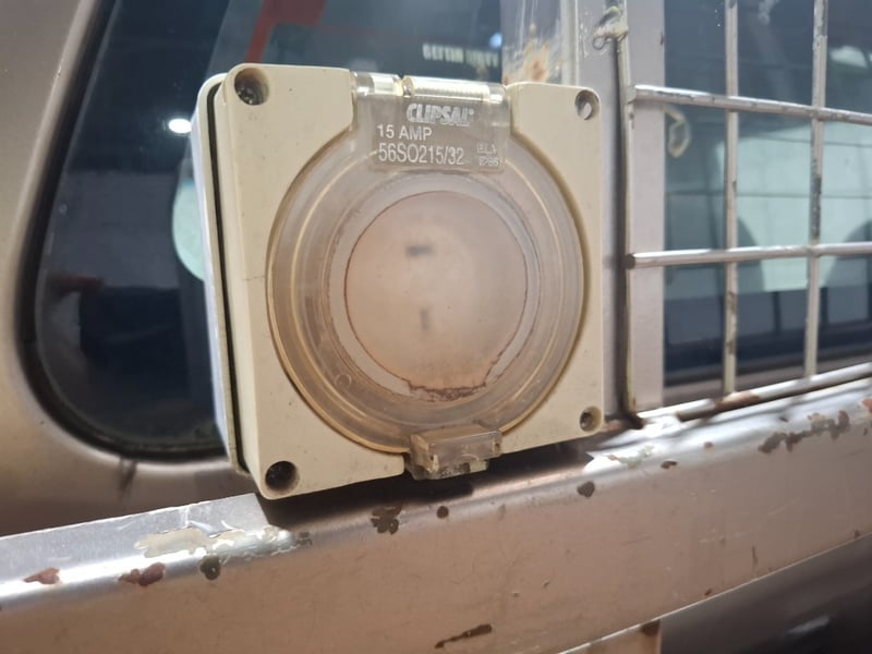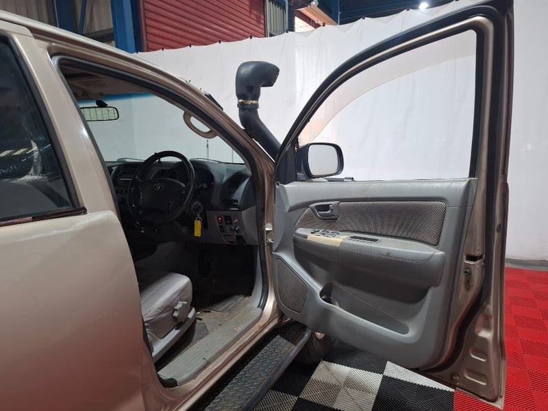 Tuff bumper bar, Toyota snorkel, 2 UHF aireals, dual 12v batteries, cupholders storage compartments, sunglasses holder, map lights, CD holder, heavy-duty tray. Damage throughout including a hole in the roof.