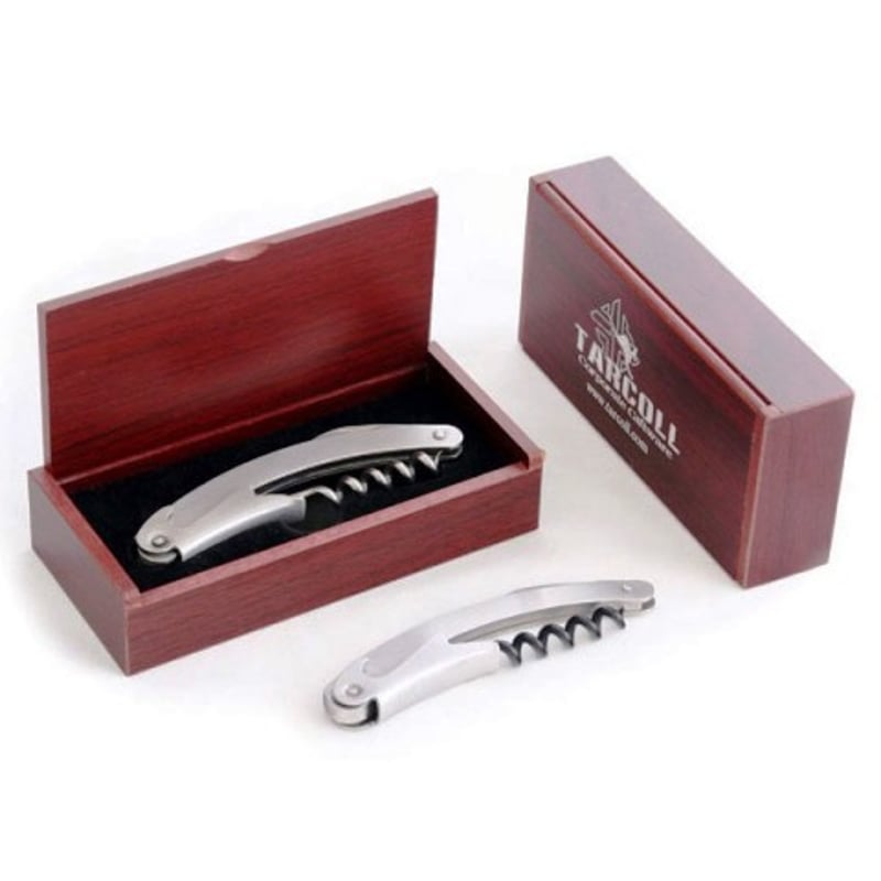 TARCOLL WINE CORKSCREW SET WITH WOODEN PRESENTATION BOX Item Size: Height: 12cm, Width: 8cm, Depth: 4cm Condition: Good - Refer To Images 584488+1