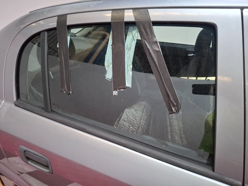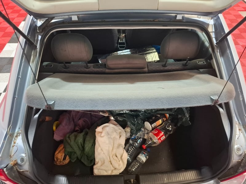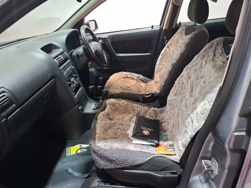 Front seat covers, manual handbrake. Glovebox bracket damaged- still functional, requires a clean, marks and scratches throughout interior and exterior. Paint fade throughout. Rear driver side window taped.