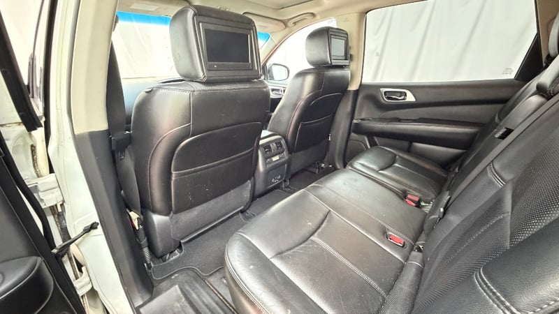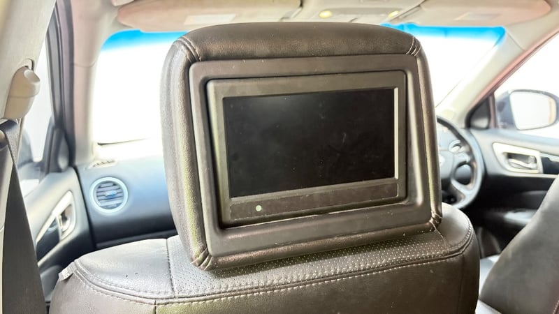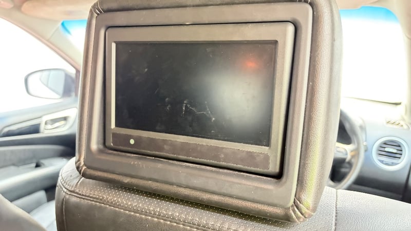 Electric boot, cup holders in middle seat, sun roof and moon roof. Seat settings for driver seat. Little tv displays for back seats. Paint chipping and peeling, scratches on front, surface rust.