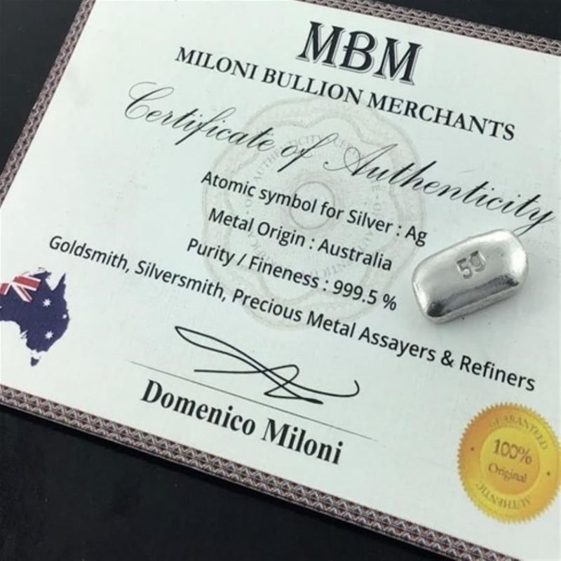 SILVER BULLION 999.5 FINE GRADE 5G INVESTOR QUALITY INGOT BAR HAND POURED 311183+39
