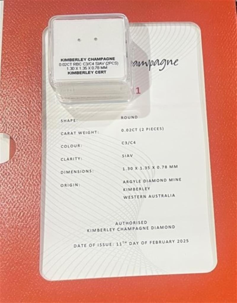 0.02 TCW ARGYLE CHAMPAGNE 2 ROUND DIAMOND CERTIFIED IN A BOX