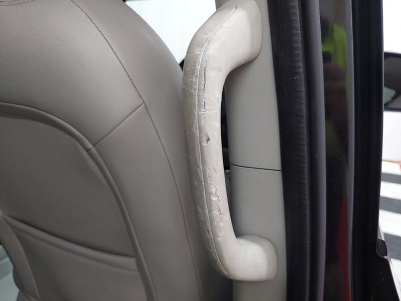 Each middle seat has arm rest. Paint scratched and peeling, minor dents, surface rust visible on bonnet, step to get into back and handle is scratched, interior upholstery has marks on it. Rubber Seal Deterioration on window edges, key fobs do not work (Use Manual Key To Unlock/Lock, Tyre Pressure High Warning On Dash.